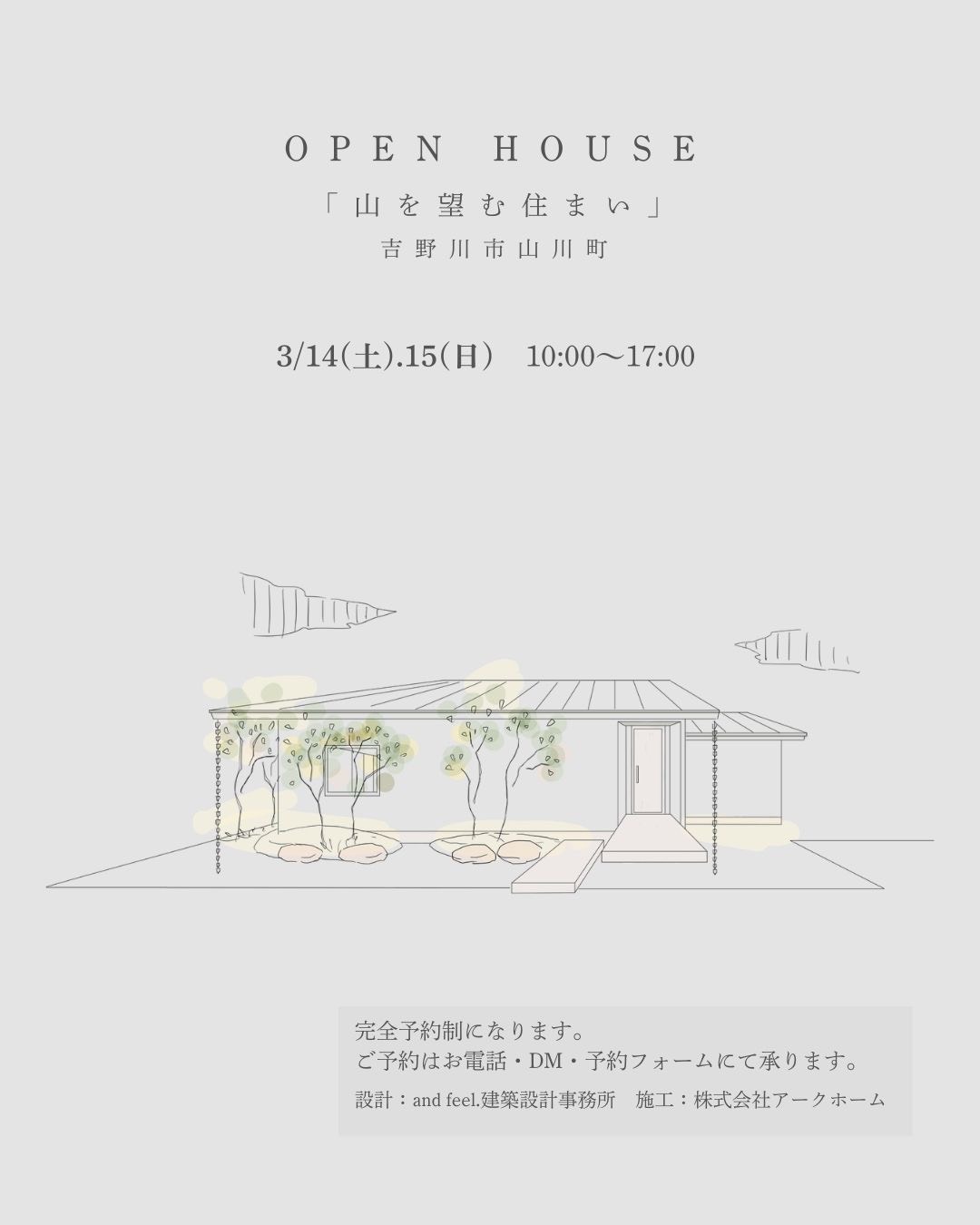 3月14日(土)15日(日)に吉野川市山川町にて完成見学会を行います。